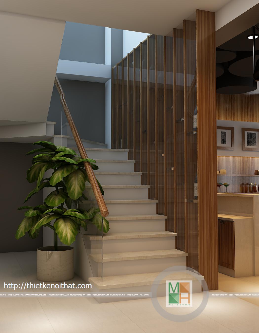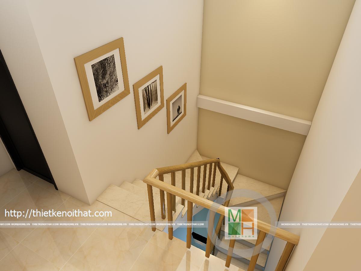 Chân cầu thang dẫn lên lầu có thể bày thêm chậu cây cảnh để trang trí và mang thiên nhiên đến gần với con người hơn. Một vài bức tranh treo trên tường ở cầu thang sẽ giúp không gian ở đây không bị đơn điệu và tẻ nhạt.