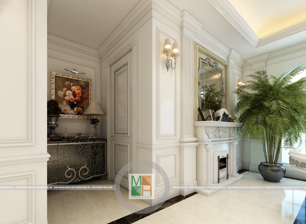 Thiết kế nội thất luôn đặc biệt chú ý đến sự kết hợp hài hòa giữa ánh sáng, màu sắc và đồ nội thất trang trí. Để làm được điều đó, một kiến trúc sư thiết kế nội thất phải rất linh hoạt và sáng tạo trong từng chi tiết dù là nhỏ nhất. Với thiết kế nội thất nhà phố nổi bật theo phong cách thiết kế tân cổ điển, căn nhà liền kề của gia đình chị Nhung là một trong những ví dụ điển hình mang ấn tượng đặc biệt. Với tông màu chủ đạo là màu trắng, kết hợp với ánh sáng và các chi tiết đã định hình rõ ràng mong muốn thiết kế nội thất ngay từ đầu của gia chủ.
