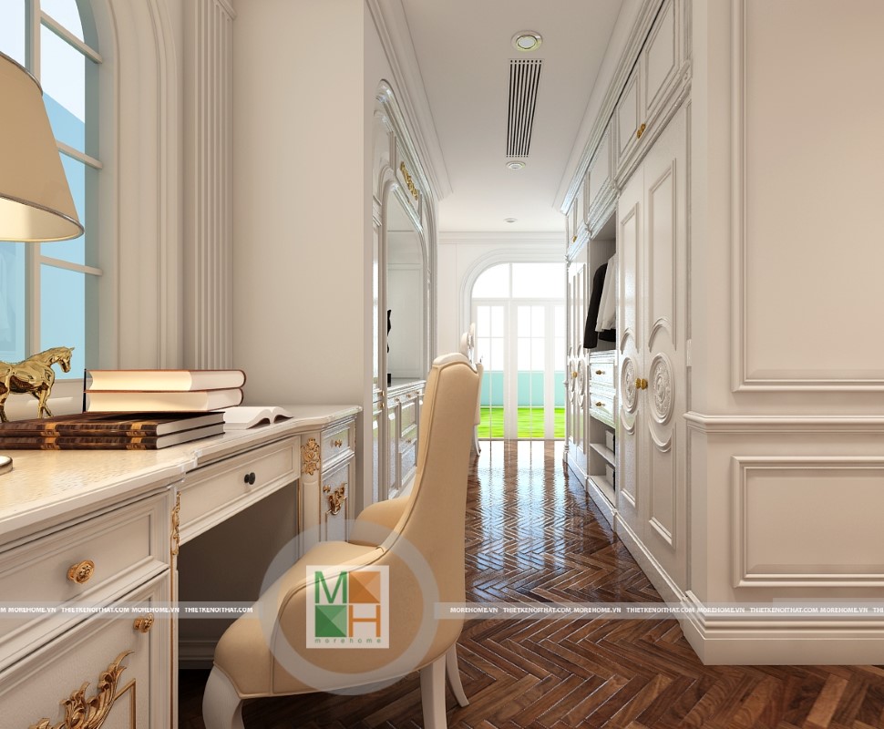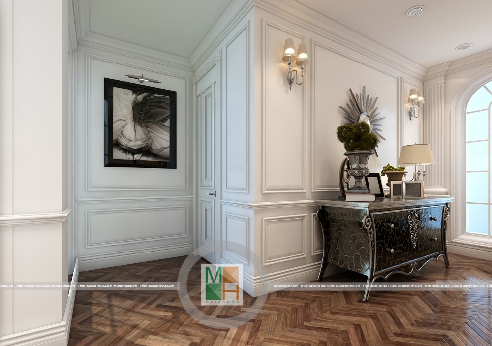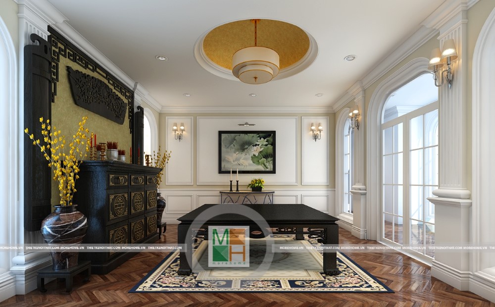 Những không gian khác trong căn nhà với thiết kế nội thất tân cổ điển như phòng thờ, hành lang, phòng đọc hay cả khu tủ quần áo cũng gây ấn tượng mạnh với gia chủ. Theo đuổi phong cách thiết kế nội thất tân cổ điển, các kiến trúc sư đã khéo léo lồng ghép nhiều chi tiết nhỏ, đan xen một cách có chủ ý định hình phong cách cho cả gia chủ và ngôi nhà. Các yếu tố đó kết hợp hài hòa với màu sắc chủ đạo, ánh sáng và các thiết kế xanh khác đã tạo nên một không gian sống sang trọng và quý phái cho gia chủ.