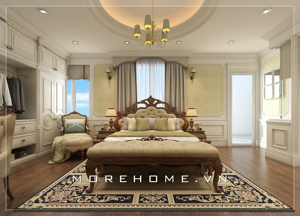 Mẫu thiết kế giường ngủ biệt thự phong cách tân cổ điển đầy sang trọng