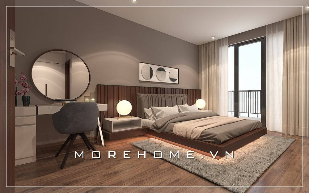 Mẫu giường ngủ gỗ công nghiệp với vẻ đẹp trẻ trung, hiện đại tạo điểm nhấn hoàn hảo cho phòng ngủ chung cư