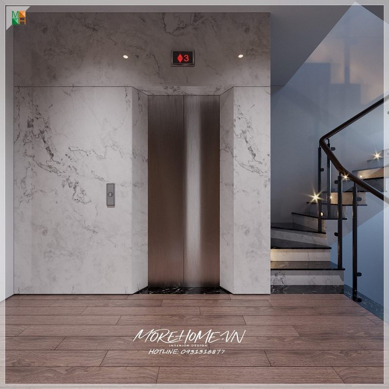 Đá ốp thang máy màu trắng vân mây được nhiều chủ nhà lựa chọn bởi khả năng chống trầy xước và tăn giảm vẻ ngoài giúp tăng thêm sự sang trọng cho thang máy của họ.